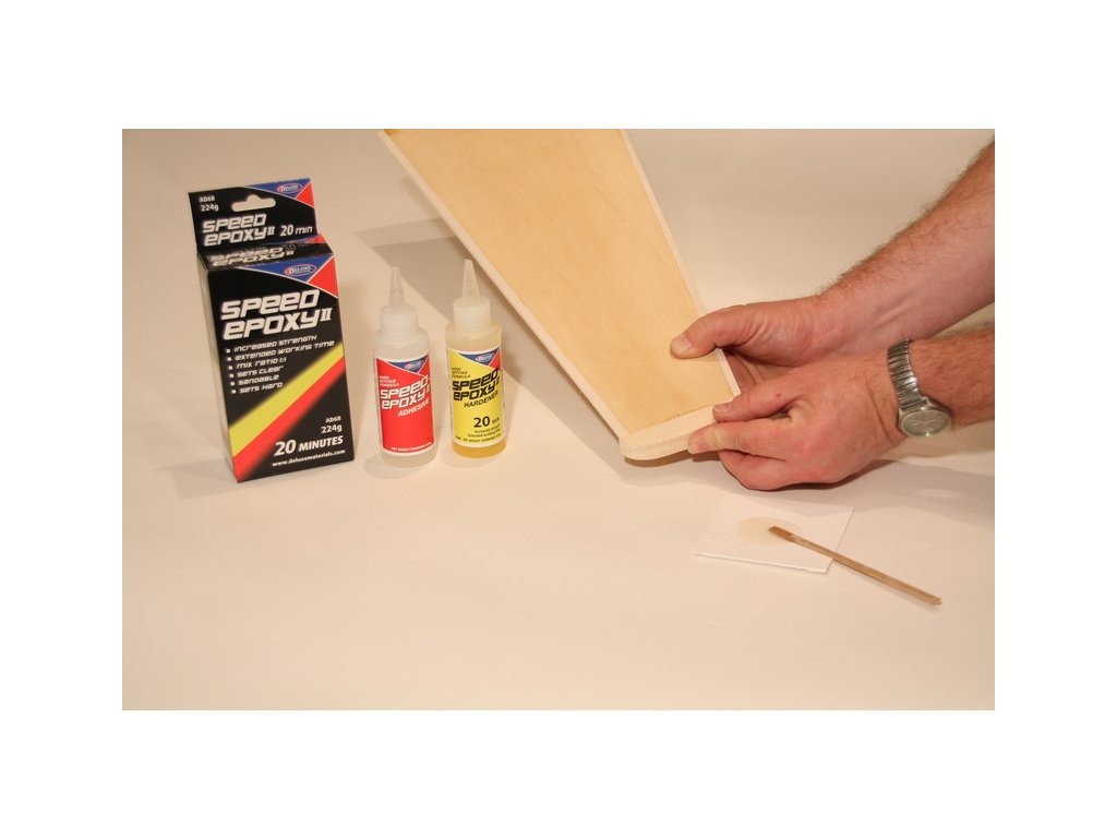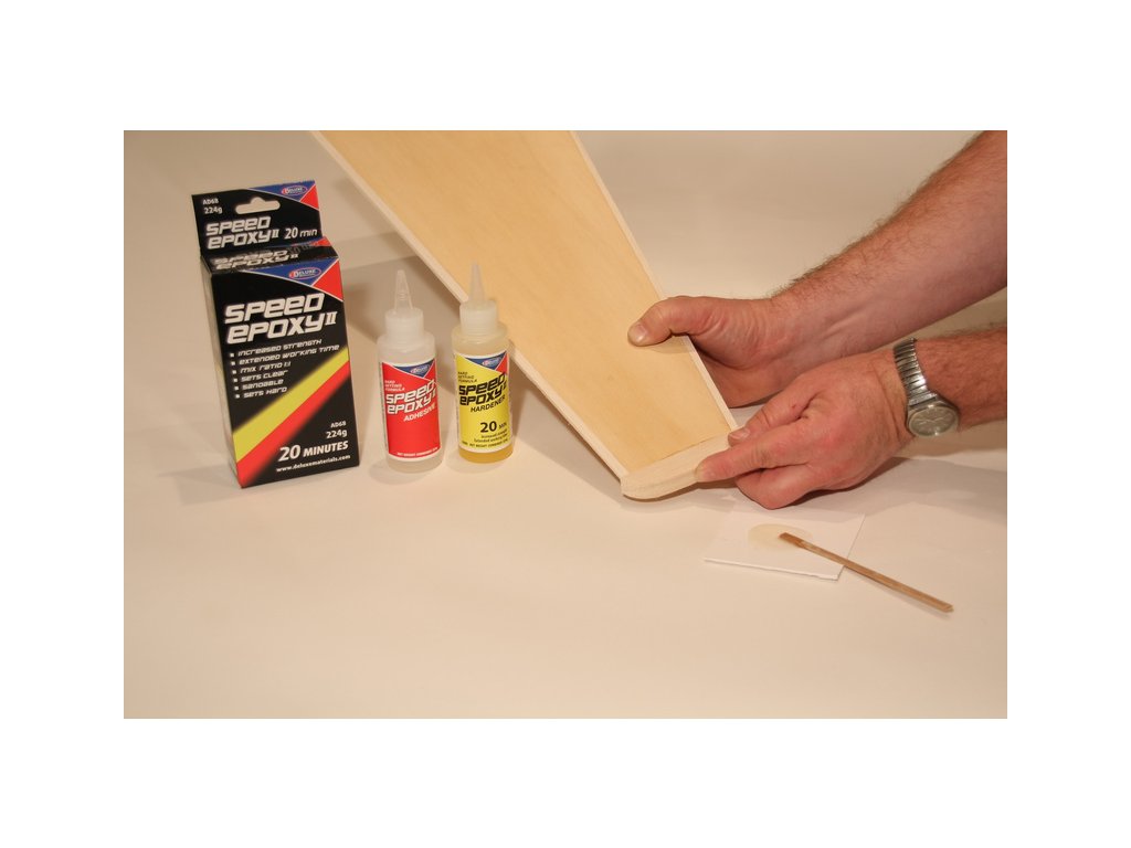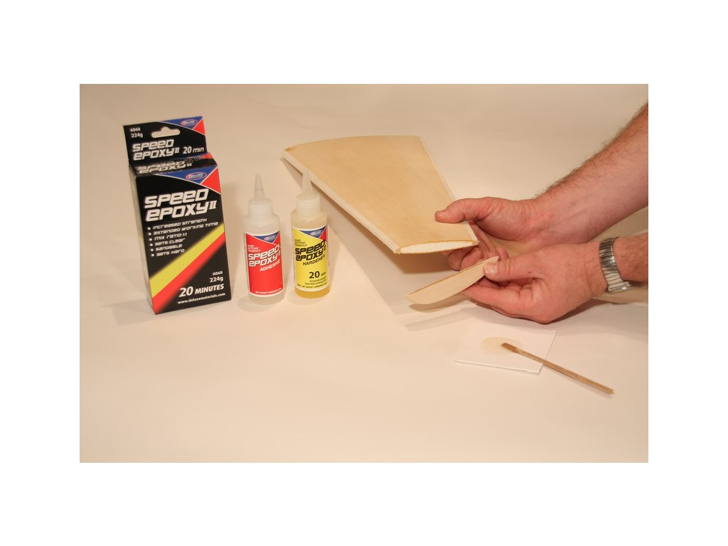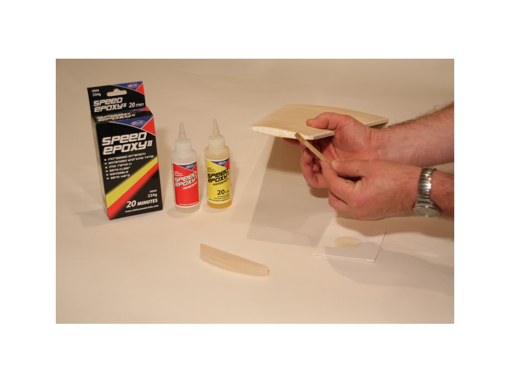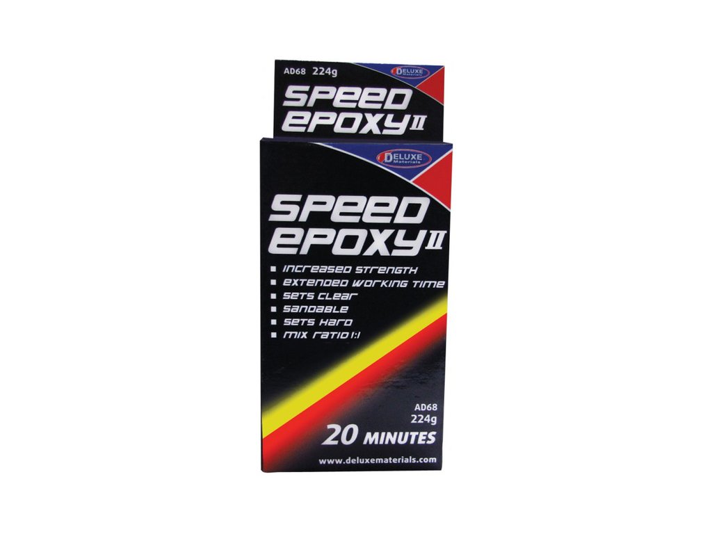 Speed Epoxy II 20 min je 20 minutová epoxidová pryskyřice, která najde použití ve všech oblastech, kde je zapotřebí více pracovního času. Vytváří po vytvrzení částečtě pružný spoj, do značné míry odolný vůči dlouhodobému působení vody. Lepí i polyesterové pryskyřice. Po smíchání s mikrobalony lze vytvořit rychlý správkový tmel. Spoj lze namáhat po 60 minutách, plná pevnost je dosažena po 3 hodinách.
