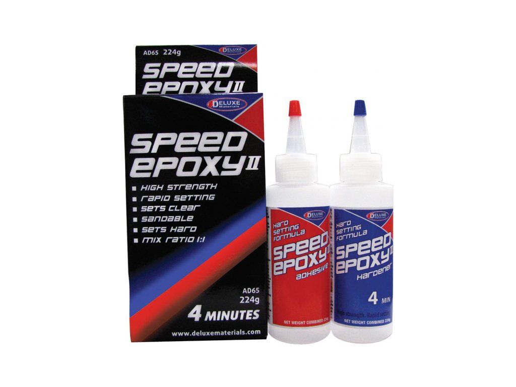 Epoxidové lepidlo Speed Epoxy II 4 min je vhodné pro díly, které jsou vystaveny vibracím. Vytváří dlouhodobě pružné a pevné spojení. Speed Epoxy II 4 min by neměl být použit pro lepení v místech, které podléhají dlouhodobému působení vody - např. ponořené části lodí. Ale bez problému může být použit pro lepení vnitřních částí trupů lodí. Lepí i polyesterové pryskyřice. Po smíchání s mikrobalony lze vytvořit rychlý správkový tmel. Spoj lze namáhat po 15 minutách, plná pevnost je dosažena po 1 hodině.