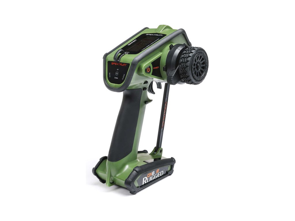 Design vysílače je založen na vynikající ergonomii vysílačů Spektrum, k tomu byla přidána ochrana vysílače proti nárazu, vlhkosti a nečistotám. Výsledkem je design pogumovaných hran skříně vysílače tlumících nárazy, který obklopuje šasi vysílače a vytváří úroveň ochrany, která se u volantového vysílače dosud nenabízela. *V návodu k použití DX6 Rugged jsou podrobně popsány omezení odolnosti vůči vodě.