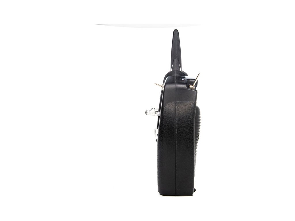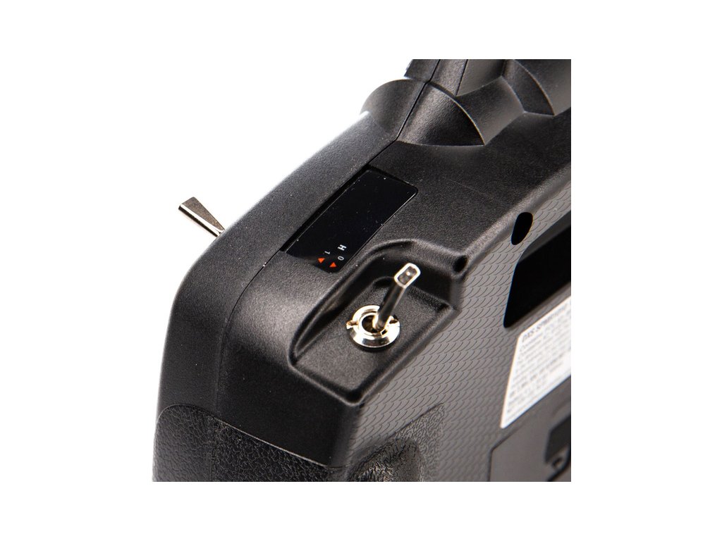 Rozložení hmotnosti, umístění a pozice přepínačů a umístění trimů byly optimalizovány pro pohodlné ovládání a držení vysílače. Součástí je integrovaná rukojeť a třmen na popruh vysílače.