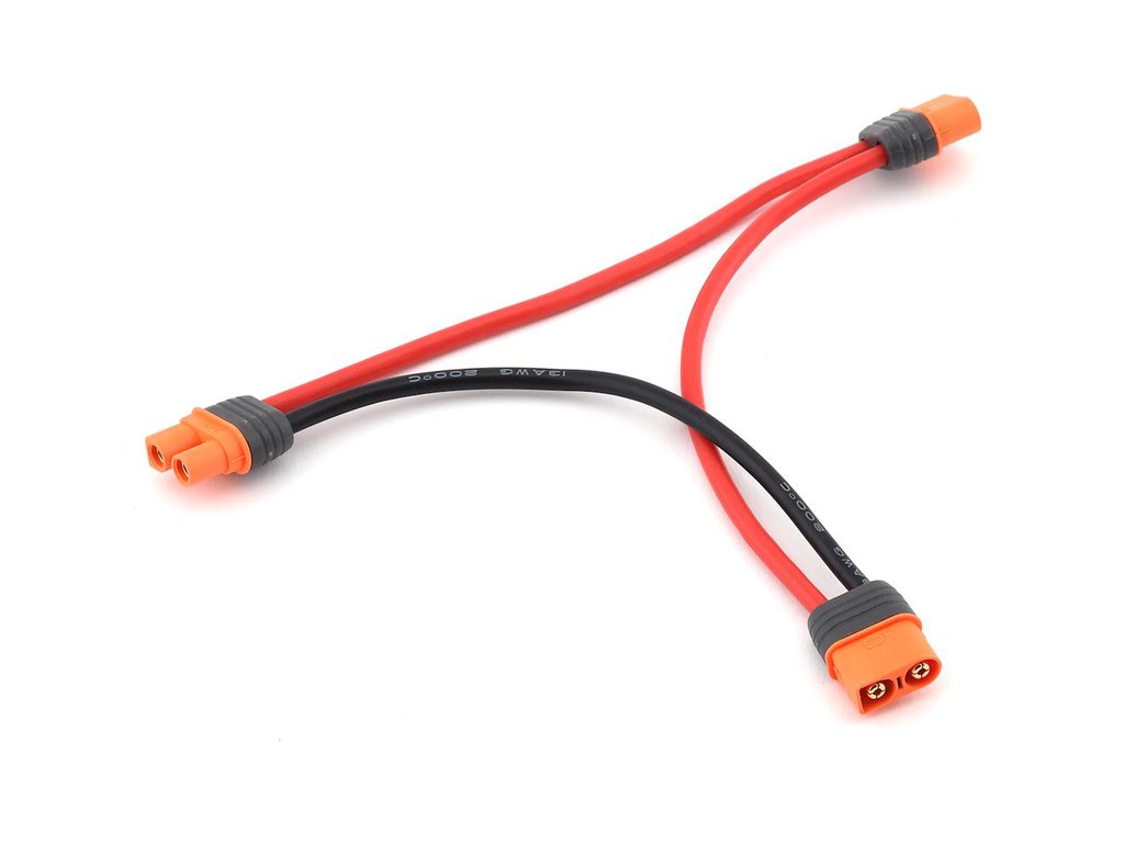 Spektrum kabel Y s konektorem IC3 baterie (samice) a dvěma sériově zapojenými konektory IC3 přístroj (samec). Délka 15cm, kabel 13AWG.