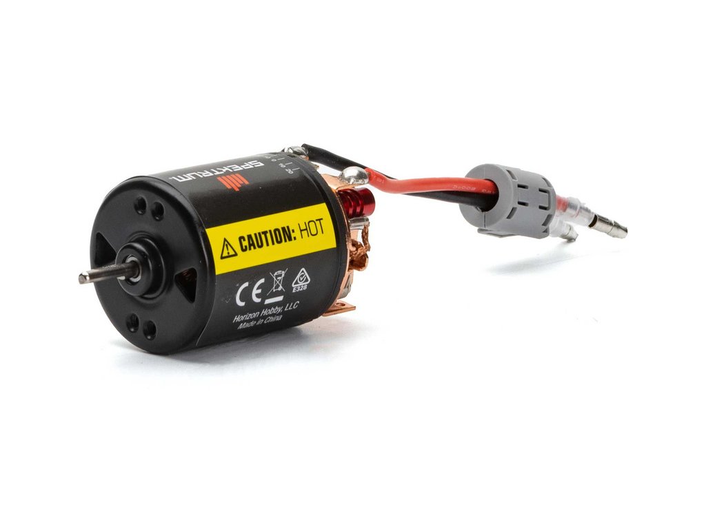 Stejnosměrný motor Spektrum Firma řady 540 s 16 závity, pro RC modely aut - crawlery a expedice. Hřídel uložená v kuličkových ložiscích, vyměnitelné kartáčky, možnost časování motoru, 5 zubový rotor pro hladký chod. Napájení 2S LiPo/6-7 čl. NiMH. Konektory 3.5mm.