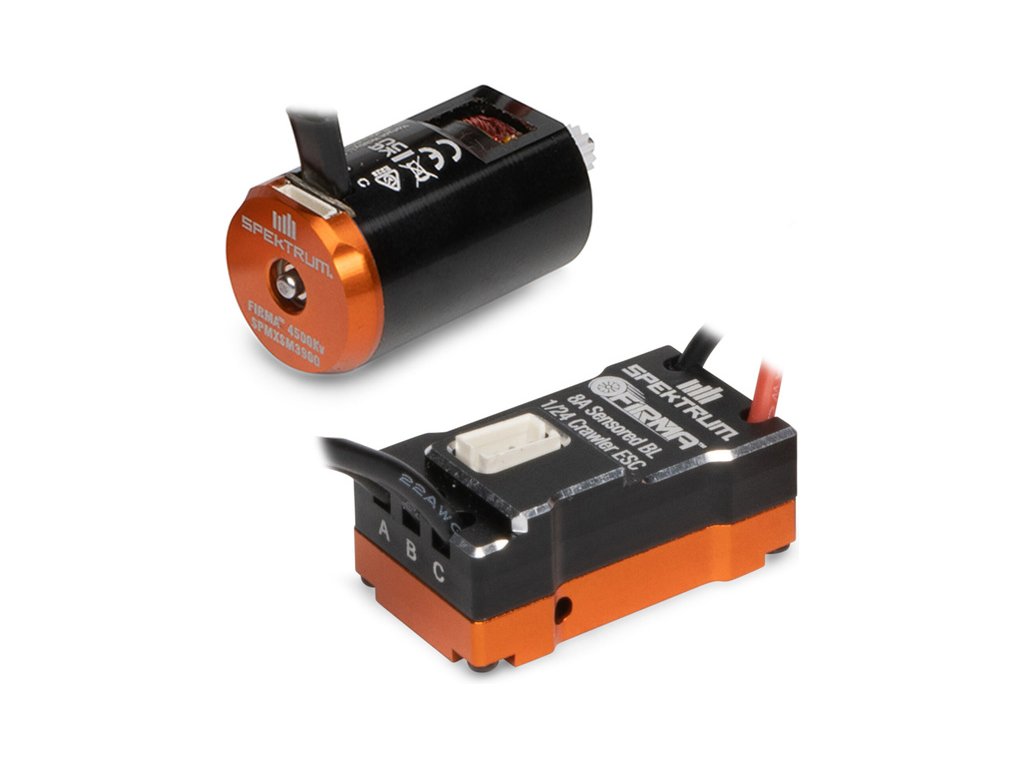 Kombinace střídavého regulátoru a motoru Spektrum™ Firma™ 1:24, to je skvělá volba pro mikro crawlery a další, které jsou provozovány na baterie 2S LiPo. Motor je vybaven vysoce přesným magnetickým enkodérem a snímačem polohy rotoru, který díky použitému software regulátoru poskytuje vynikající pocit ovládání jízdy při jakékoli rychlosti. Perfektně se hodí pro závody nebo výkonnostní ježdění s Crawlery. Pokrok v senzorovém řízení motoru umožňuje regulátoru přizpůsobit otáčky motoru poloze plynové páky s bezkonkurenční přesností. Toto kombo je speciálně navrženo pro platformu Axial® SCX24 & AX24, kde nabízí maximální výkony. Na motoru a regulátoru jsou nainstalovány 2mm zlacené kolíky s dutinkami.