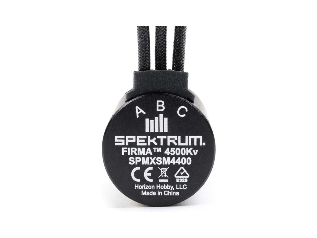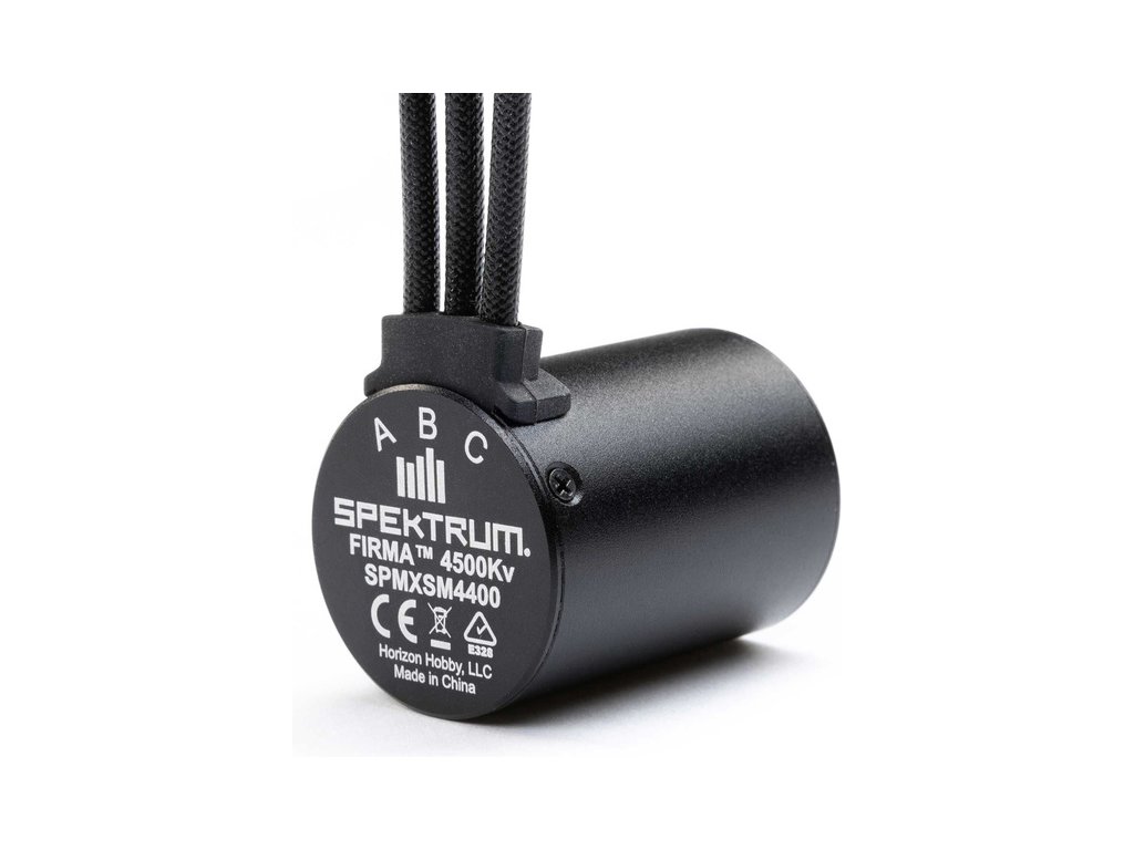 Spektrum motor střídavý Firma 2838 4500Kv, se 4-pólovým provedením, CNC obrábeným hliníkovým tělem, lakovaným měděným vinutím, kvalitními kuličkovými a ocelovou výstupní hřídelí, 3.17 mm. Vhodné pro RC modely aut 1:18-1:14, například Arrma Grom.