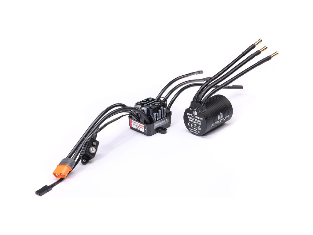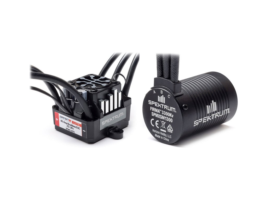 Kombo Spektrum motor střídavý Firma 3300ot/V s regulátorem Spektrum Firma 85A Smart Litem, vyvinuté speciálně pro závodní třídu RC modelů aut na oválu. Napájení 2S LiPo.