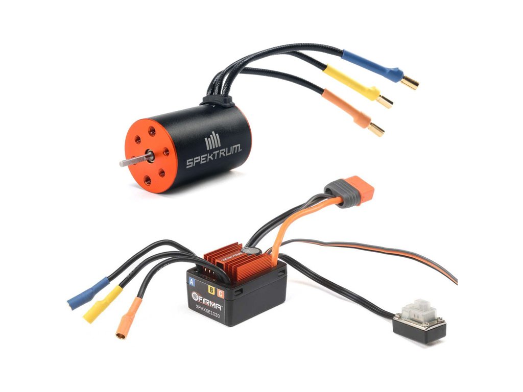 Kombo Spektrum motor střídavý Firma 4500ot/V s regulátorem Spektrum Firma 30A Smart Mini. Vhodné pro RC modely aut 1:16 - 1:18 s napájením 2-3S LiPo. Nastavitelný lineární BEC 6/7.4V 3A. Podpora telemetrie a funkcí Smart.