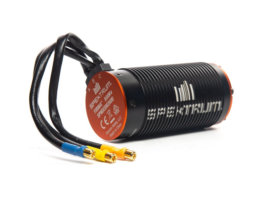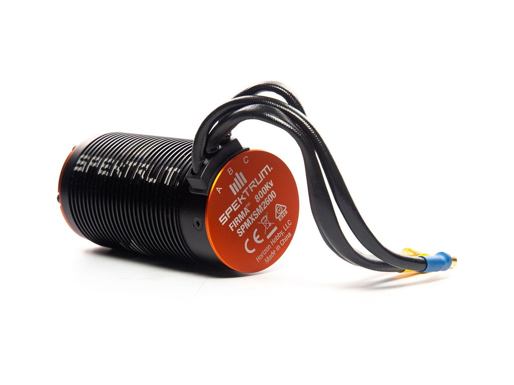 Střídavý motor Spektrum Smart Firma 4P 800Kv je určen pro RC modely aut 1:5. Konstrukce 4-pólového rotoru s 8-magnety, tělo vyrobené z hliníku s žebrováním. Výstupní hřídel 8 mm, z legované oceli a přesná ložiska. Kabely s pozlacenými kolíky. Napájení 3-8S LiPo. Vhodné pro použití s regulátorem 160A.
