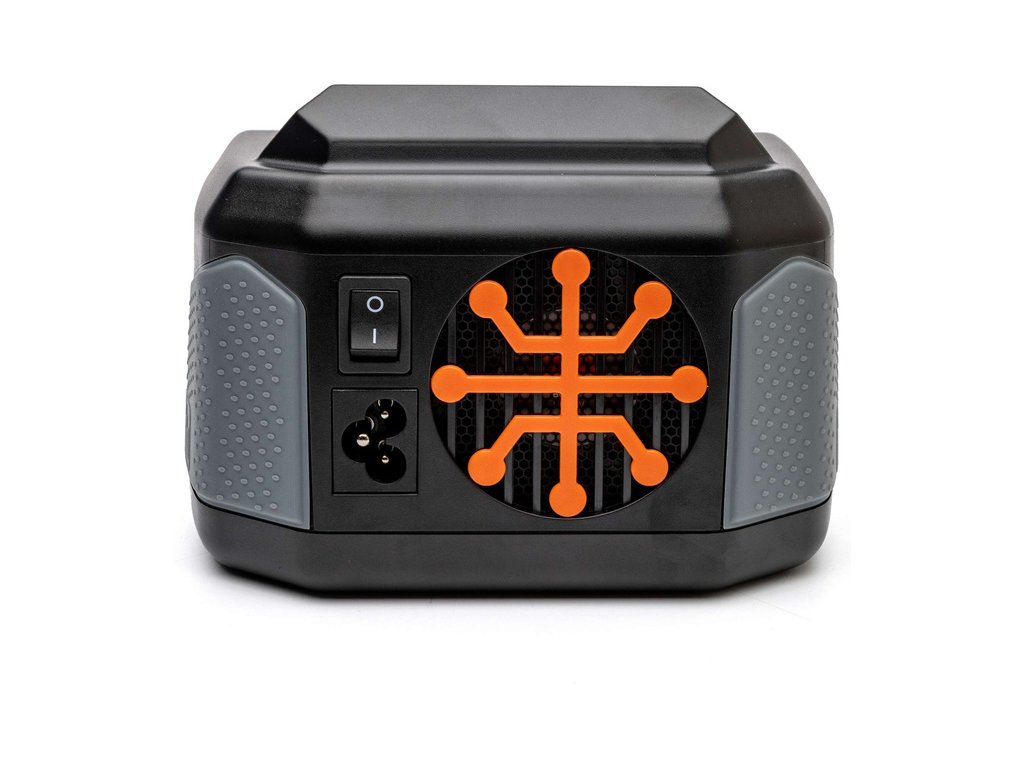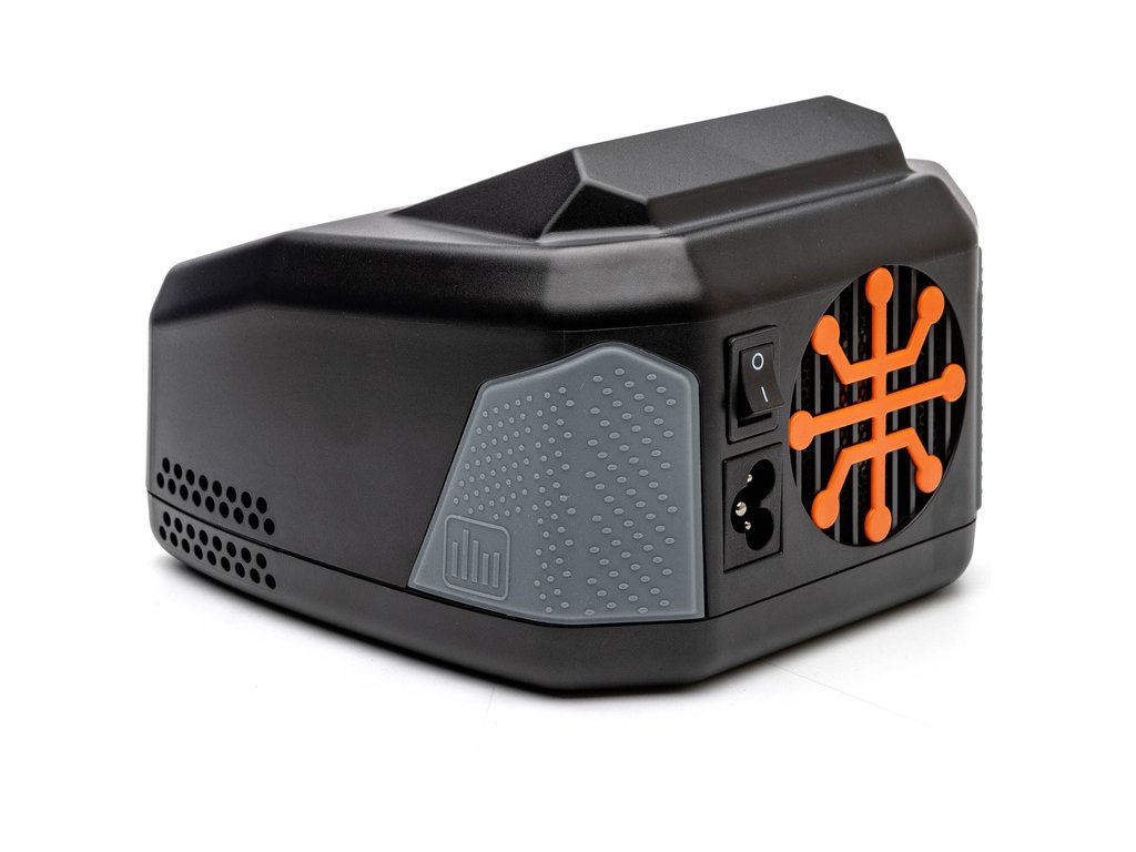 Elegantní skříň nabíječe se perfektně hodí na váš pracovní stůl a do vašeho přepravního boxu. Napájecí síťový kabel je odnímatelný pro snazší přepravu. Pryžové rukojeti vám pomohou bezpečně držet nabíječ při připojování a vyjímání baterií. Vstupní a výstupní porty USB vám umožňují aktualizovat firmware nabíječky a nabíjet sekundární zařízení. Mezi další funkce patří integrovaný vypínač napájení a chladicí ventilátor s nízkou hlučností.