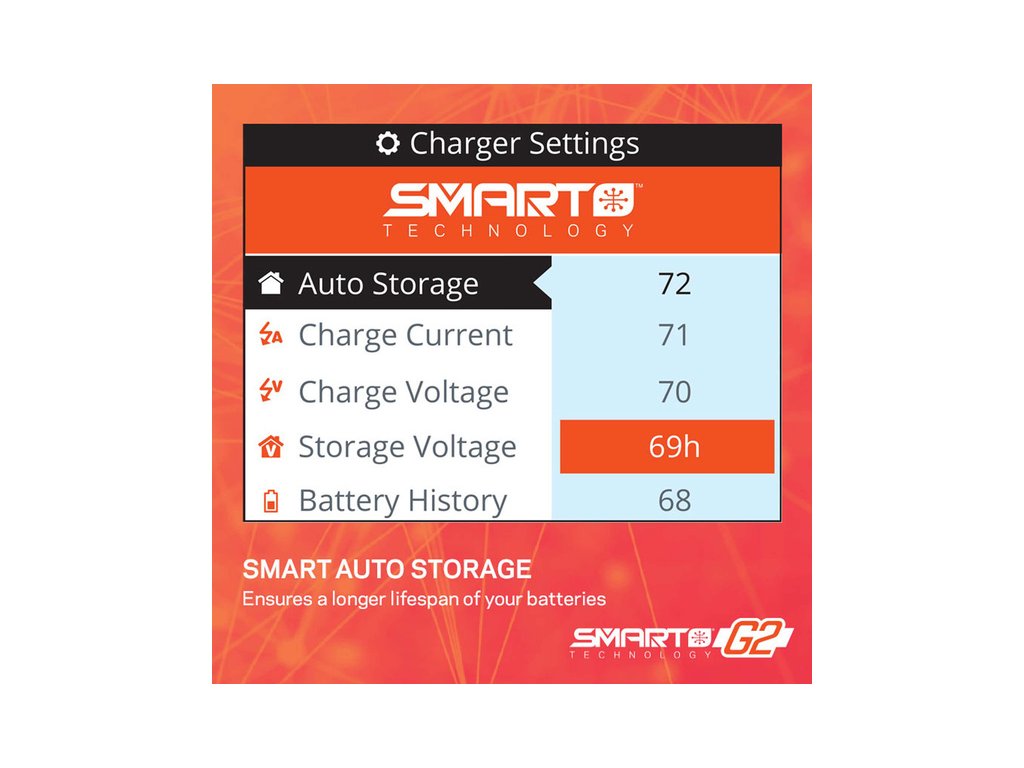 (Akumulátory Spektrum Smart obsahují funkci automatického vybíjení do storage, funkci lze nastavit přes nabíječ)