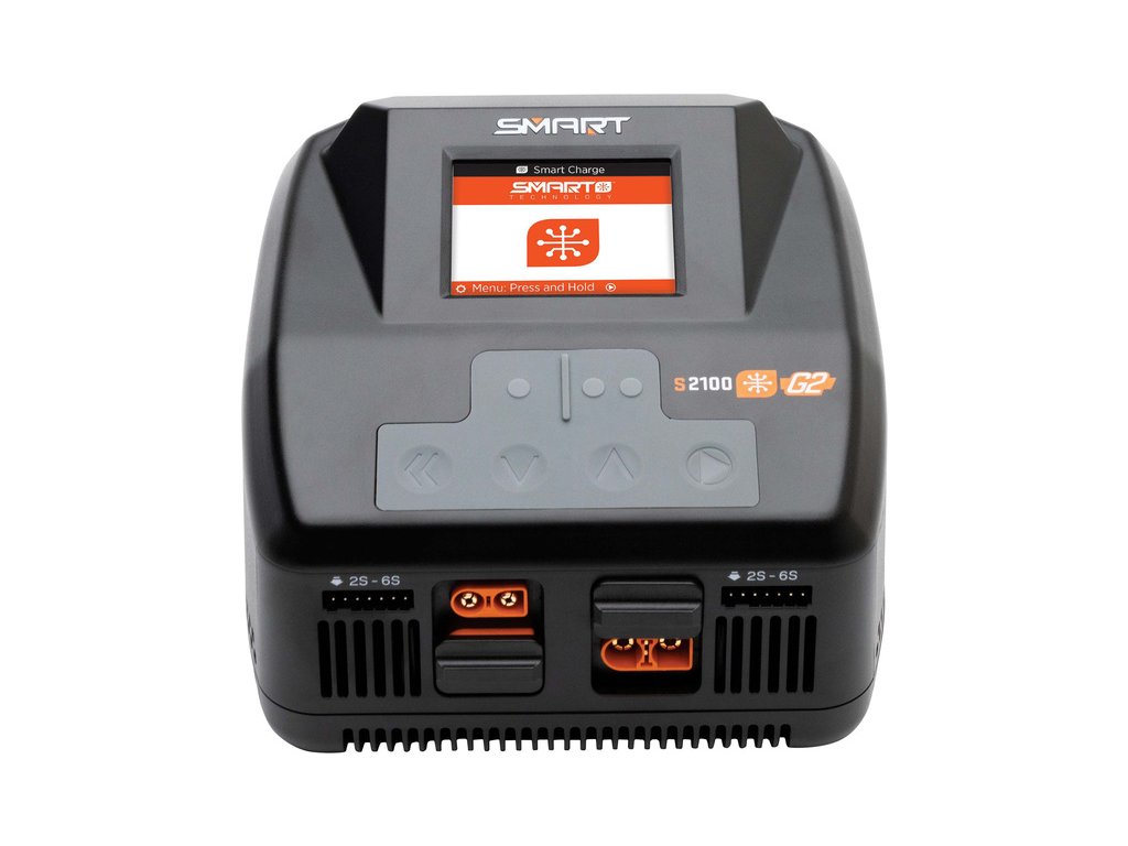 Díky nabíječi S2100 Smart G2 AC je nabíjení baterie jednodušší, než kdykoli předtím. Jeho funkce automatického nabíjení rozpozná parametry vaší Spektrum SMART baterie jako je typ článků a rychlost nabíjení, po připojení nabíjecího kabelu automaticky zahájí bezpečné nabíjení. Čas zobrazený na displeji nabíječe odpočítává čas až do úplného nabití baterie Smart.