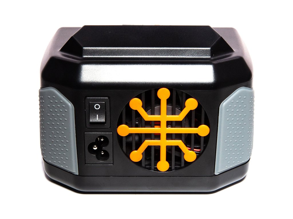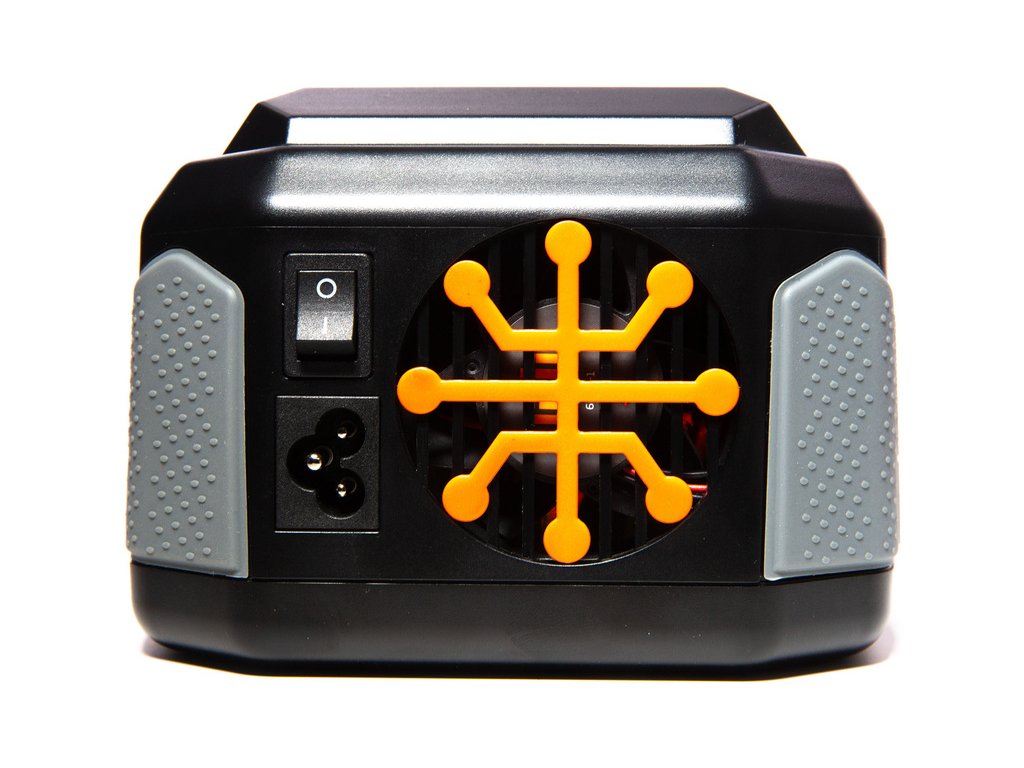 Elegantní skříň nabíječe se perfektně hodí na váš pracovní stůl a do vašeho přepravního boxu. Napájecí síťový kabel je odnímatelný pro snazší přepravu. Pryžové rukojeti vám pomohou bezpečně držet nabíječ při připojování a vyjímání baterií. Vstupní a výstupní porty USB vám umožňují aktualizovat firmware nabíječky a nabíjet sekundární zařízení. Mezi další funkce patří integrovaný vypínač napájení a chladicí ventilátor s nízkou hlučností.