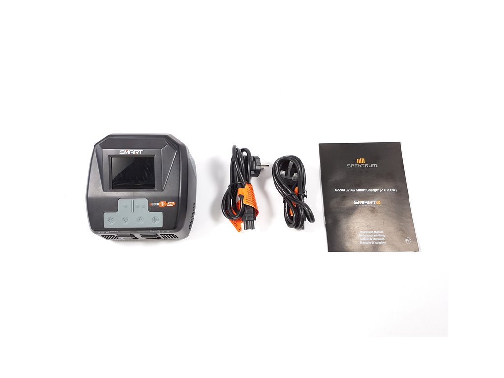 V balení je nabíječ Spektrum Smart S2200 2x200W AC, síťový kabel, návod CZ, manuál EN, DE, FR, IT.