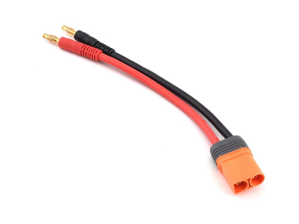 Spektrum nabíjecí kabel s banánky 4 mm a konektorem IC5 přístroj (samec), délka 30cm, kabel 10AWG. Nabíjecí kabel bez datového kabelu pro nabíjení bez SMART.