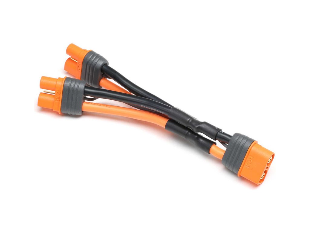Spektrum Y-kabel s konektorem IC3 přístroj (samec) a paralelně zapojenými konektory IC3 baterie (samice). Kabel 12AWG. Kabel obsahuje datový vodič pro funkce Spektrum Smart.