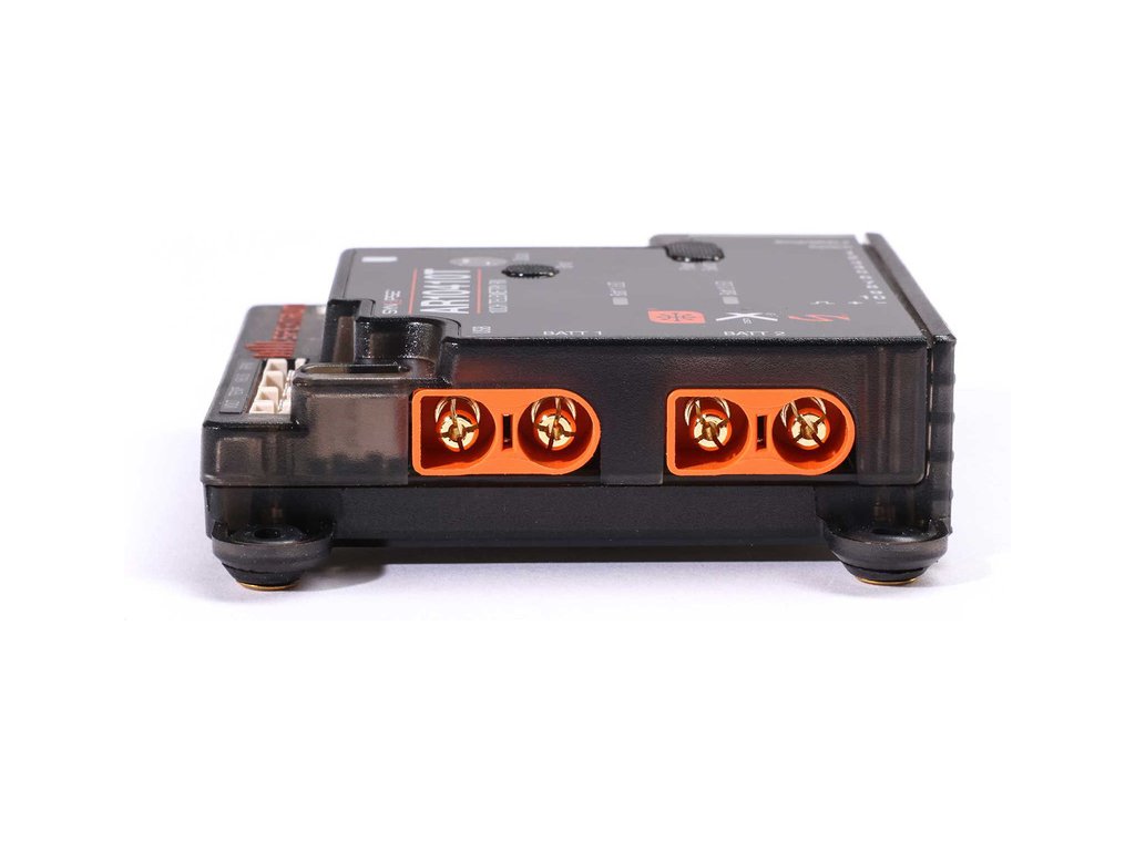 Patentovaný, rendundantní systém napájení je ideální pro napájení modelů letadel s více servy s vysokým proudovým zatížením. Napájení přes dvě baterie (3.5 - 12.6V) má oddělené okruhy a v případě výpadku jedné baterie druhá baterie okamžitě převezme napájení.