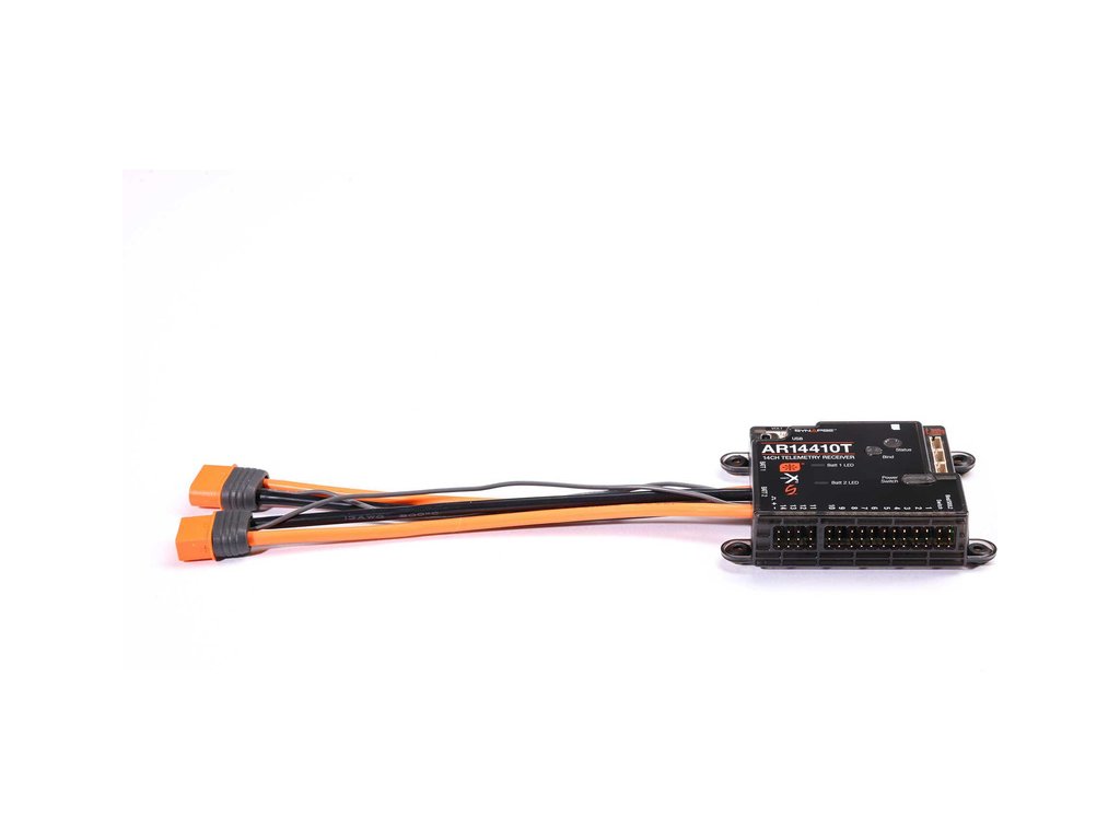 Spektrum™ AR14410T PowerSafe™ je funkcemi nabitý přijímač s integrovanou telemetrií s plným dosahem. Přijímač je navržen pro velké modely s více servy a vysokým proudovým odběrem. Přijímač má duální - redundantní napájení s konektory IC3. To umožňuje bezpečně napájet vysoko-proudé systémy přímo z přijímače.