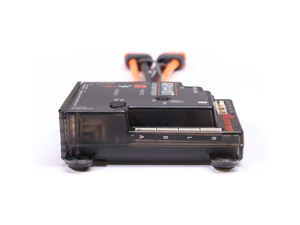 Patentovaný, rendundantní systém napájení je ideální pro napájení modelů letadel s více servy s vysokým proudovým zatížením. Napájení přes dvě baterie (3.5 - 12.6V) má oddělené okruhy a v případě výpadku jedné baterie druhá baterie okamžitě převezme napájení.