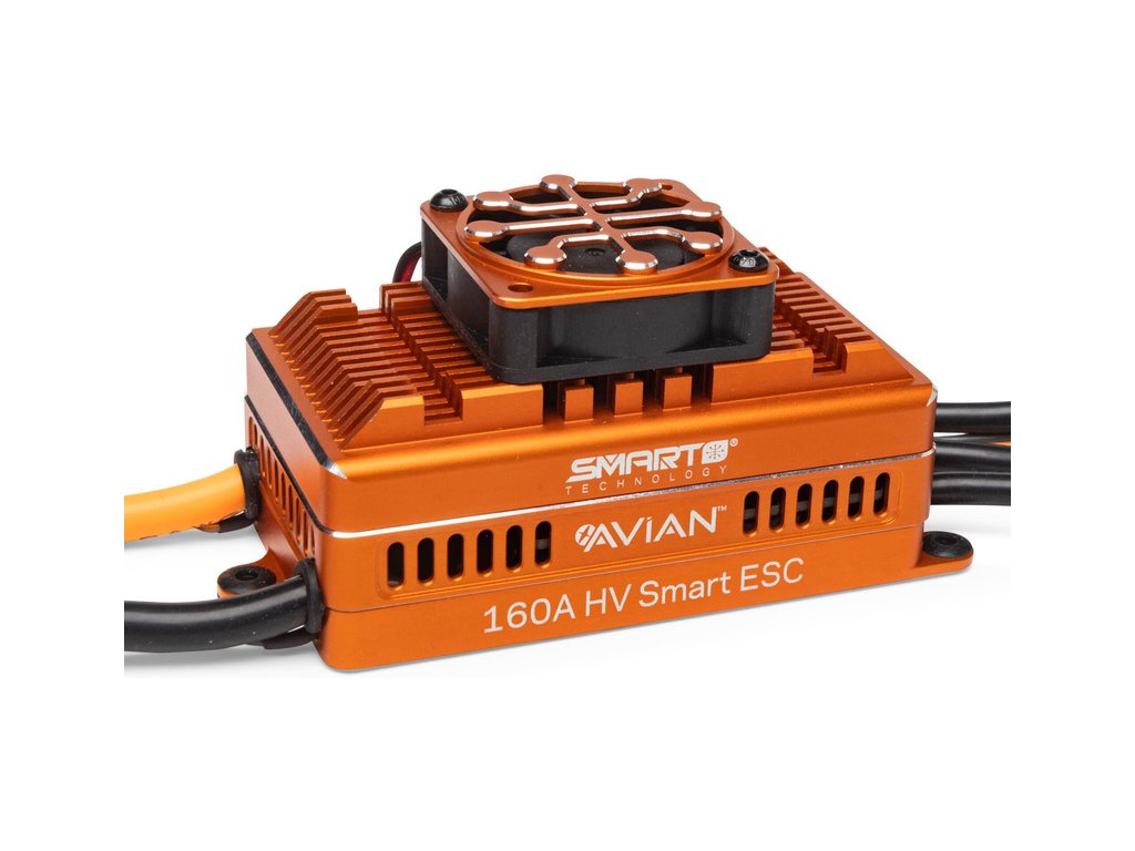 Letecký regulátor Spektrum Smart Avian 160A HV pro 6-14 článků LiPol, konektor IC5, s telemetrií SMART, která se přenáší prostřednictvím kompatibilních přijímačů Spektrum s telemetrií.. BEC max. 25A, stálý 10A. Rozměry 88x50x36mm, hmotnost 376g.
