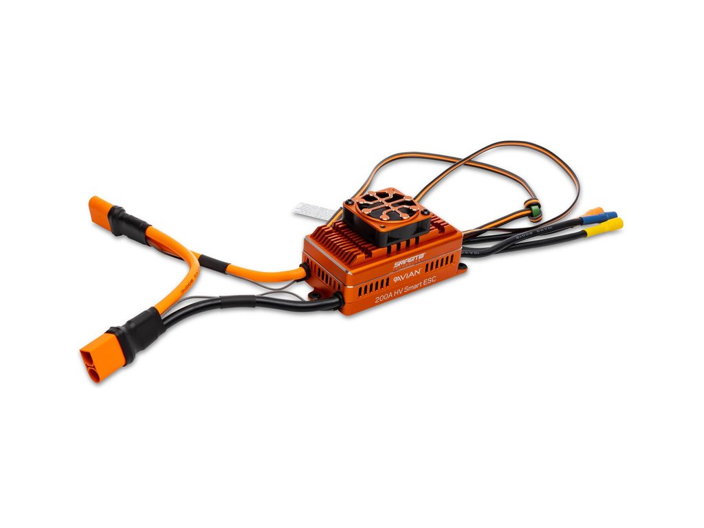 Nejvýkonnější letecký regulátor Spektrum Smart Avian 200A HV pro 6-14 článků LiPol, konektor IC5, s telemetrií SMART, která se přenáší prostřednictvím kompatibilních přijímačů Spektrum s telemetrií.. BEC max. 25A, stálý 10A. Rozměry 89x50x36mm, hmotnost 376g.
