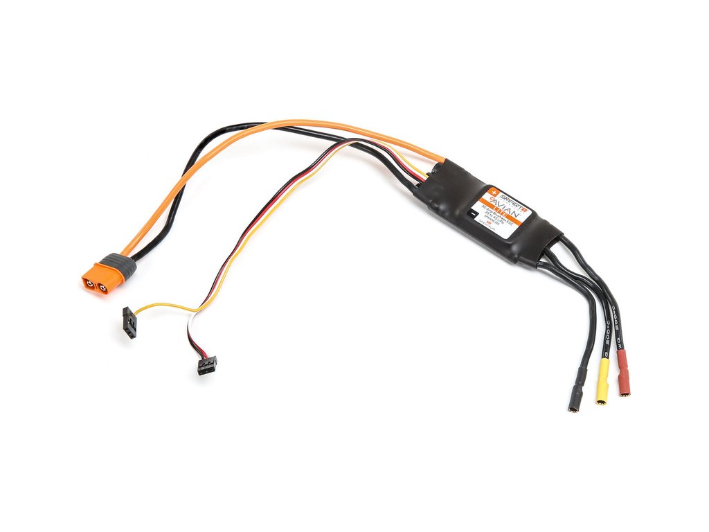 Náhradní díl do RC modelů letadel E-flite 4-Site 0.8m 3D FF. Střídavý letecký regulátor Spektrum Avian Lite 30A, napájení 2 až 4 články LiPo, konektor Spektrum IC2.