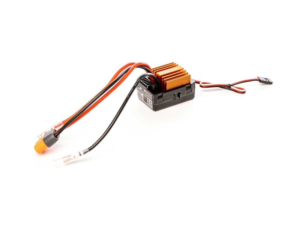 Náhradní díl pro RC model auta Axial SCX10 III Base Camp 4WD: Spektrum regulátor stejnosměrný Firma 40A WP IC3. Hmotnost 70g, rozměry 46x33x28mm. Napájení 2-3S LiPol nebo 5-9 čl. NiMH/NiCd.