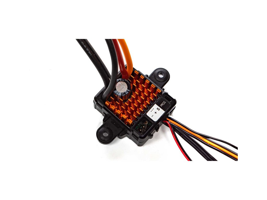 Elektronika regulátorů Spektrum Firma pro RC modely aut je kompletně zalita ve speciální zalévací hmotně, která brání vstupu vlhkosti či nečistot do elektroniky. Regulátor se zapíná a nastavuje tlačítky, které jsou pod pryžovým krytem.