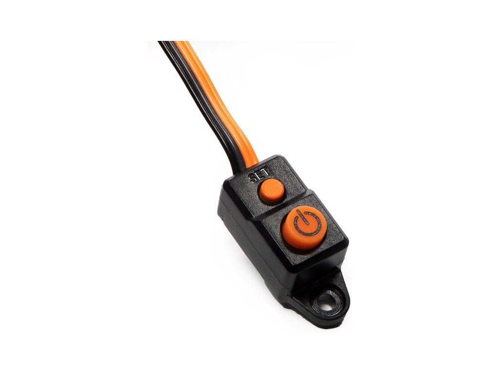 Elektronika regulátorů Spektrum Firma pro RC modely aut je kompletně zalita ve speciální zalévací hmotně, která brání vstupu vlhkosti či nečistot do elektroniky. Regulátor se zapíná a nastavuje tlačítky, které jsou pod pryžovým krytem.