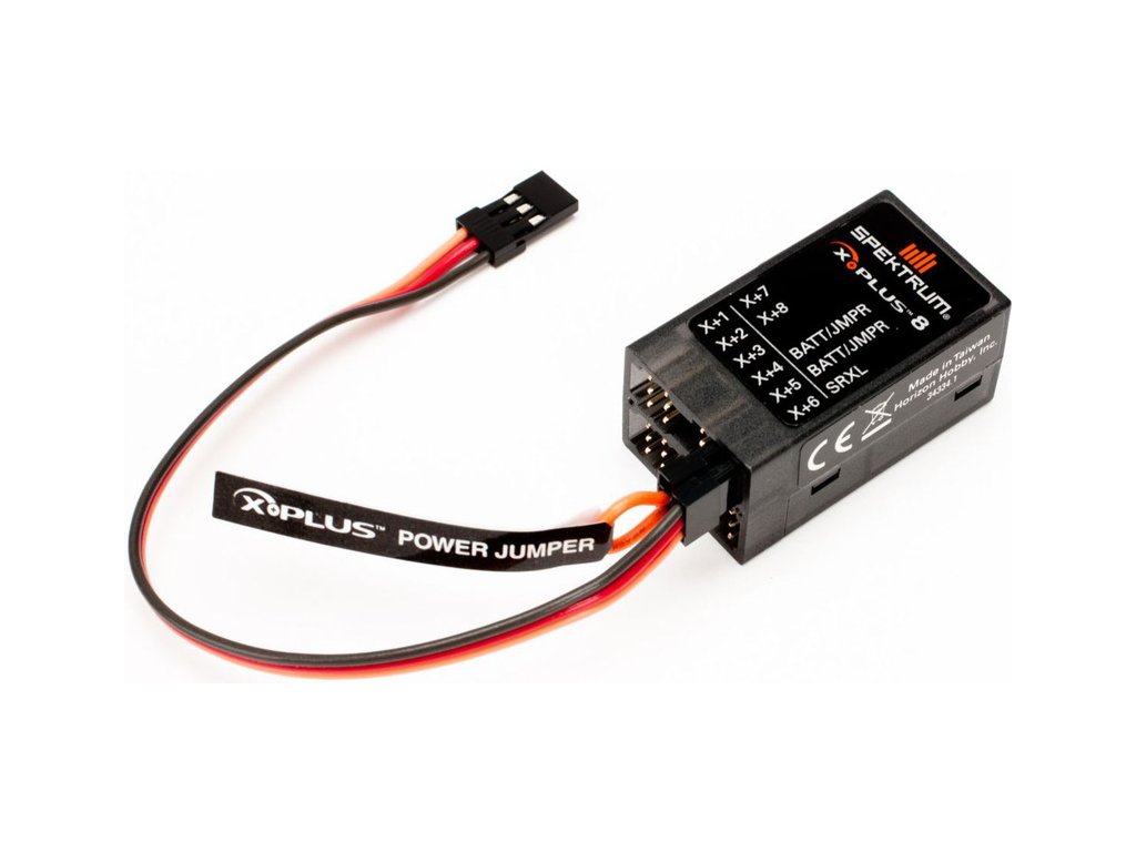 Osmikanálový rozšiřující modul Spektrum X-Plus pro přijímače Spektrum s portem X-Plus najde uplatnění pro nejrůznější aplikace v leteckých modelech, např. pro zatahovací podvozky, osvětlení, kouřové systémy, ovládání pumovnice, a pod. Rozšiřující modul X-Plus se připojuje standardním třížilovým servo kabelem do X-Plus portu přijímače. Vzhledem k vysokým proudovým odběrům musí být propojovací kabel dostatečně dimenzovaný a opatřený kvalitními zlacenými konektory.