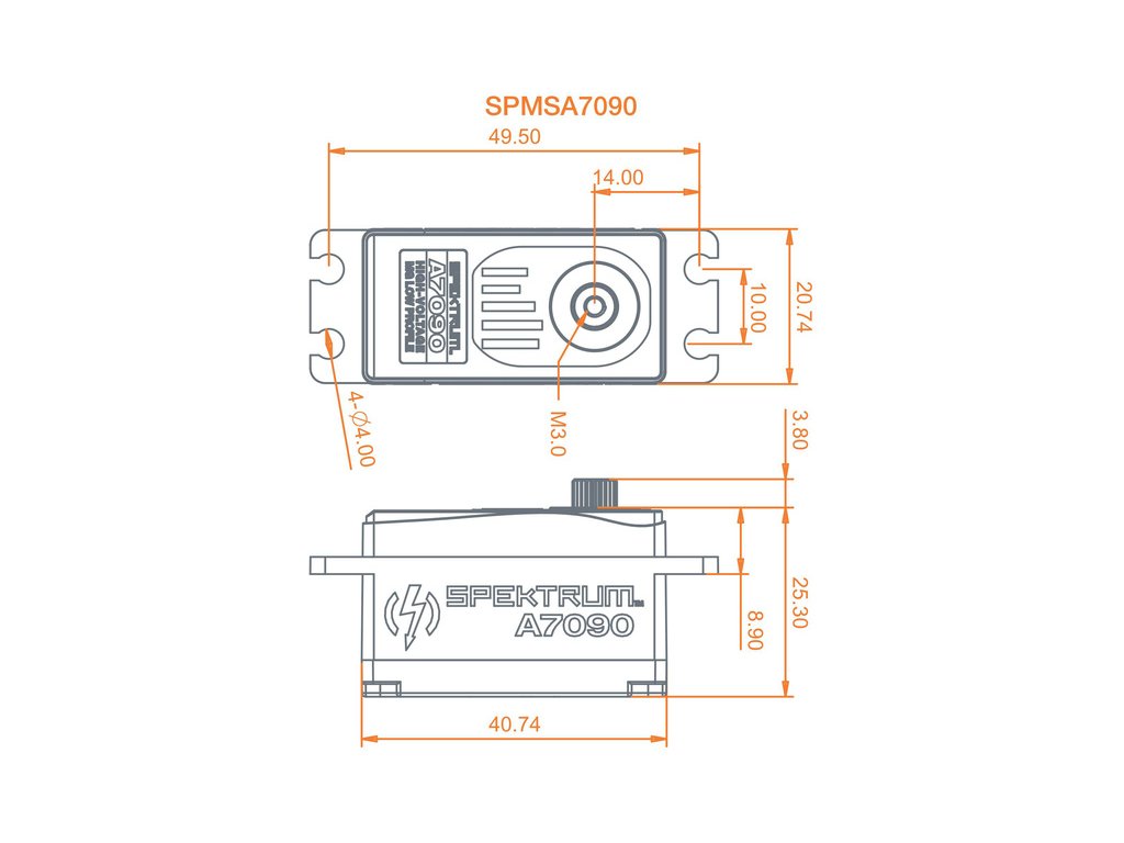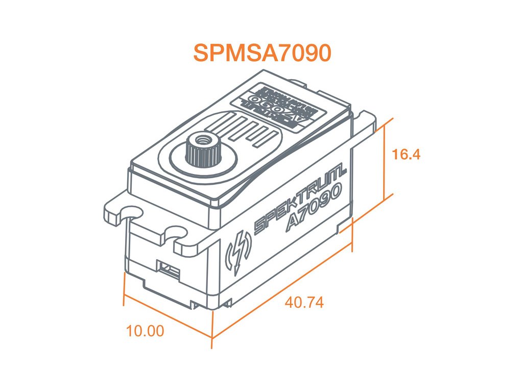 Nízkoprofilové digitální servo Spektrum™ A7090 se střídavým motorem nabízí vynikající výkon za dobrou cenu. A7090 dokáže při napájení 2S LiPol (8,4V) produkovat působivý točivý moment 18 kg-cm při bleskově vysokých rychlostech 0,068 s/60°. Jeho kovové převodové ústrojí s nízkým opotřebením je poháněno odolným střídavým motorem s dlouhou životností a je vybaveno dvěma kuličkovými ložisky pro hladký chod. Vyznačuje se přesnou přídržnou silou. Stejně jako všechna serva Spektrum poskytuje A7090 spolehlivost, konzistenci a výkon.