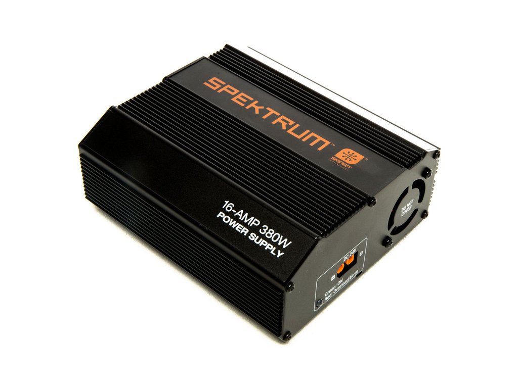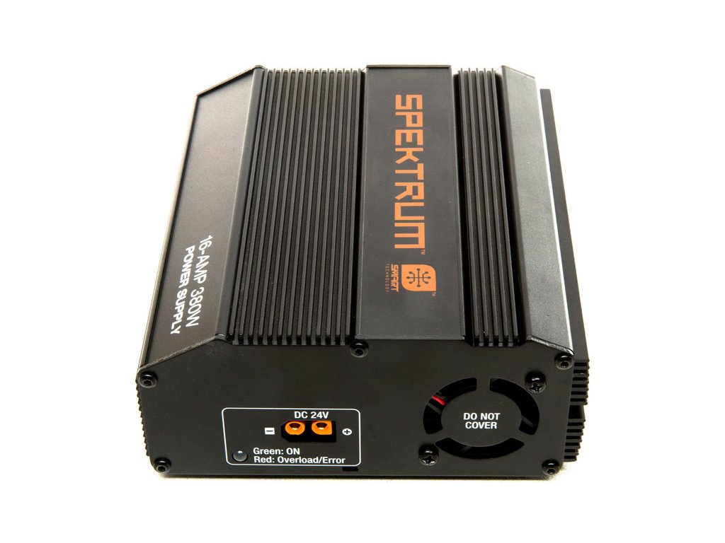 Síťový spínaný stabilizovaný zdroj Spektrum zdroj 24 V 16 A pro napájení nabíječů či dalších zařízení. Chladicí ventilátor je aktivní s automatikou řízení otáček, ochrana před nadměrnou teplotou, přetížením a zkratem. Nabíječ je vestavěn ve skříňce z hliníkových profilů, které současně účinně rozptylují vznikající teplo do okolí. Chlazení je dále zajištěno ventilátorem, zdroj ovládá otáčky ventilátoru dle potřeby - ventilátor tedy běží, pokud je potřeba.