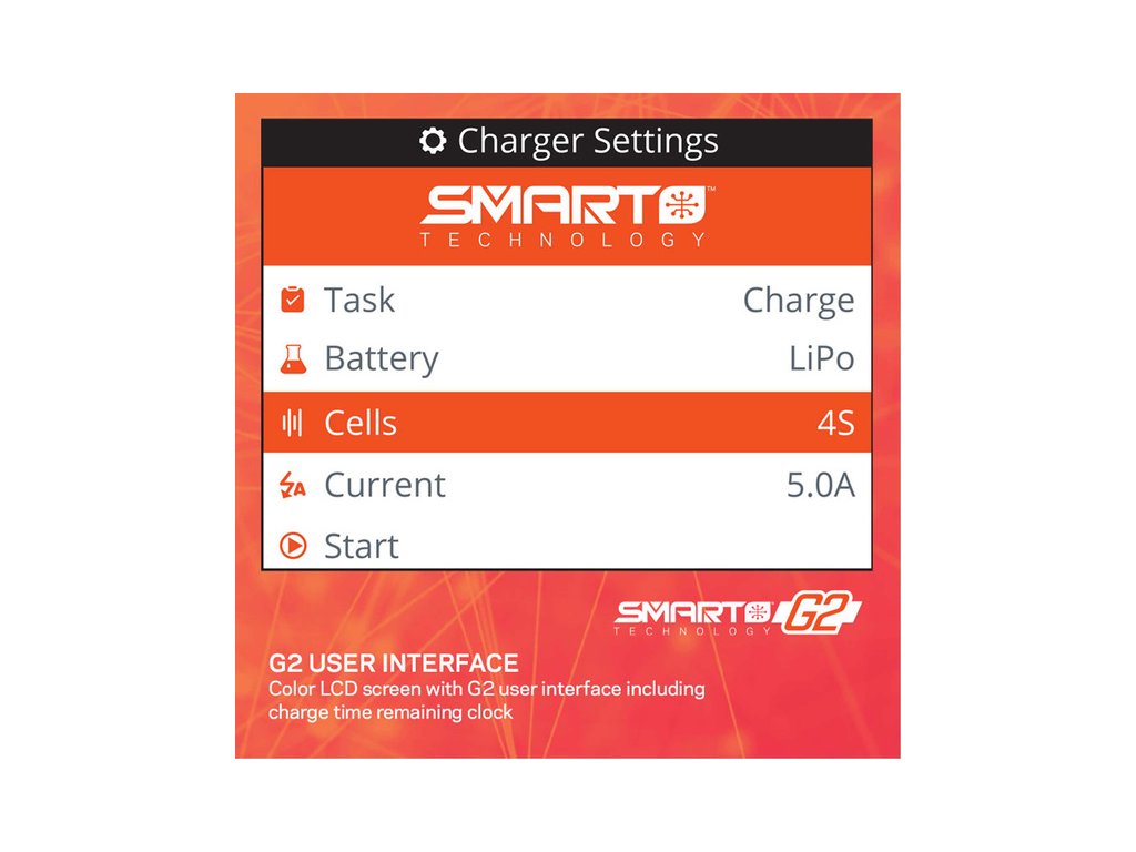 Stejně jako u jiných baterií Smart, nemusíte nastavovat vlastní předvolby nabíjení baterie Spektrum™ Smart G2, pokud nebudete chtít parametry změnit. Když je baterie Smart G2 LiPo připojena k nabíječce Spektrum™ Smart, načtou se její jedinečné parametry nabíjení a informace o zdraví do nabíječe z integrovaného paměťového mikročipu. Prostřednictvím nabíječe můžete zobrazit a nastavit předvolby, jako je třeba proud, takže vše, co je k nabití baterie zapotřebí, je připojení k vašemu nabíječi SMART. O zbytek se stará technologie SMART.