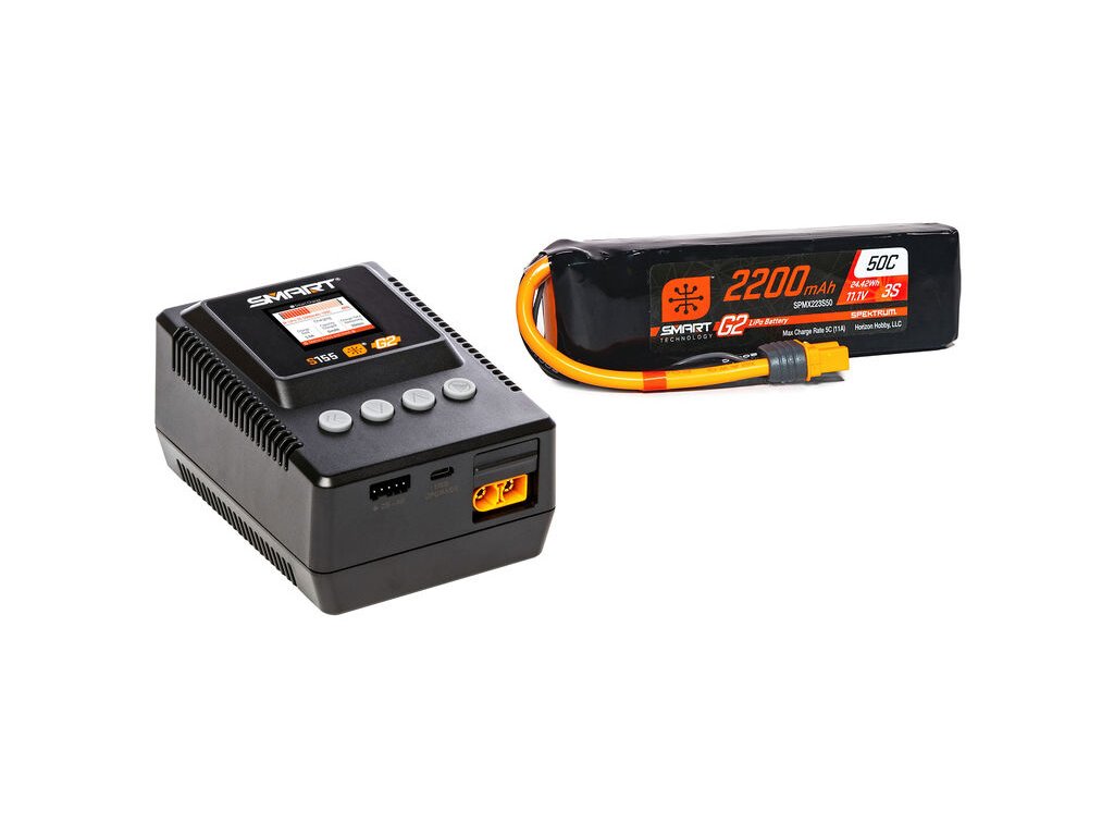 Balíček Spektrum™ Smart Powerstage™ je řešení v jedné krabici pro RC letadla s napájením 3S LiPo. Sada obsahuje nabíječ Spektrum Smart S155 1x55W AC s technologií SMART, výstup s konektory IC3/IC5, barevný LCD displej a baterii Spektrum Smart G2 LiPo 11.1V 2200mAh 50C IC3.