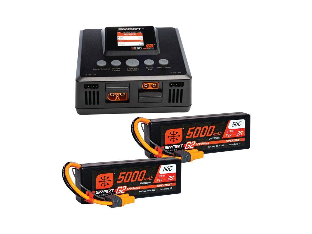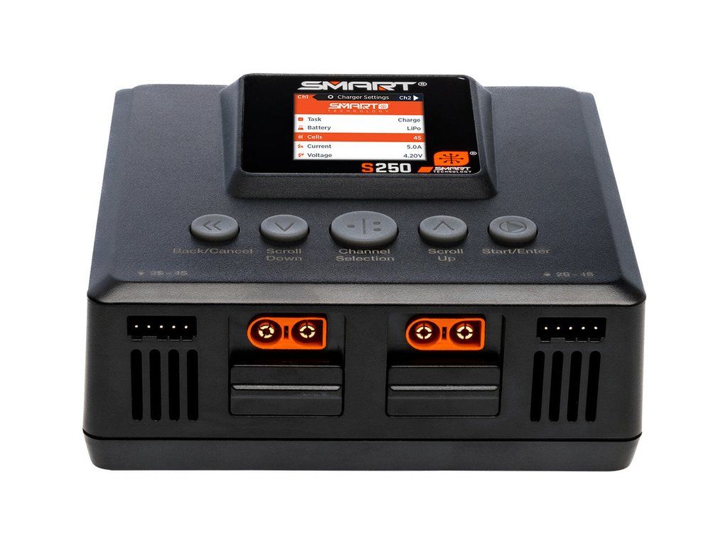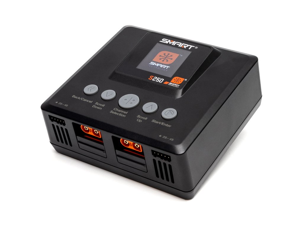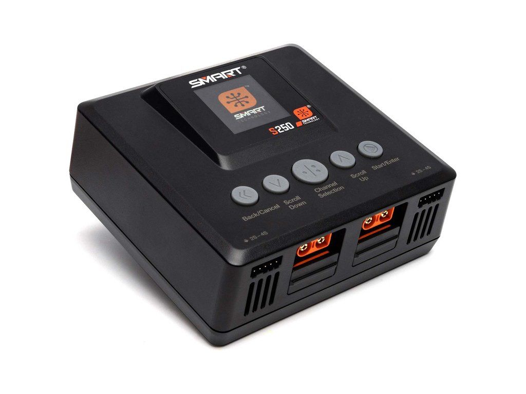 S výkonem až 50 W na každý kanál nebo 100 W na jednom kanálu, pro rychlejší nabíjení s možností nabíjení baterií na integrovaných výstupních portech IC3® nebo IC5® (kompatibilní EX3/EC5) poskytuje nabíječ Spektrum™ Smart S250 2x50W všestranné a bezproblémové nabíjení. Nabíječ S250 funguje prakticky s jakoukoli RC baterií a je zpětně kompatibilní s konektory EC3™ a EC5™. Používejte jej společně s bateriemi Smart řady G1 nebo G2 a budete ohromeni jeho neuvěřitelnou funkčností a výkonem.
