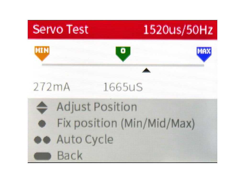- Servo-test (1520μs) - k testování serva s centrálním impulsem 1520 μs