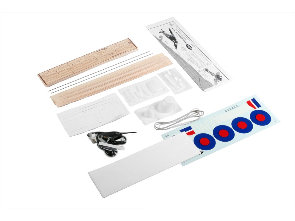 Stavebnice obsahuje: balsové laserem vyřezávané díly, balsové nosníky, vakuově lisované maketové díly (kryt motoru, kabiny...), plastovou vrtuli s hřídelí a hlavicí, gumový svazek (guma 5x1mm), plastová kola, ocelovou strunu na podvozek a další drobné díly, plastová kola, potahový papír, aršík mokrých obtisků, stavební plán.