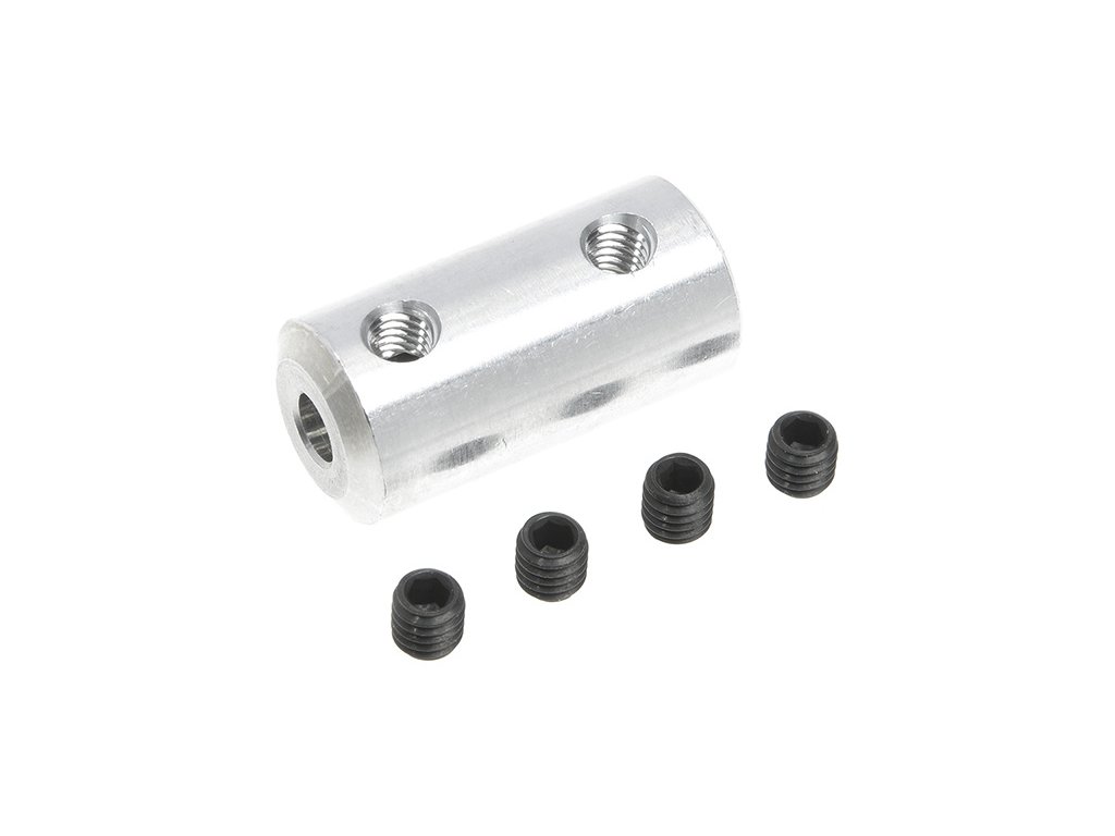 Spojka dvou hřídelí, průměr otvorů 3/2mm, průměr venkovní 9mm.