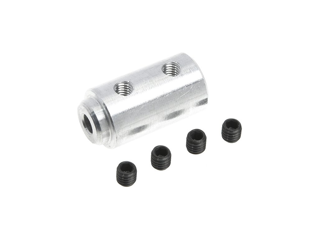 Spojka dvou hřídelí, průměr otvorů 3/3mm, průměr venkovní 9mm.