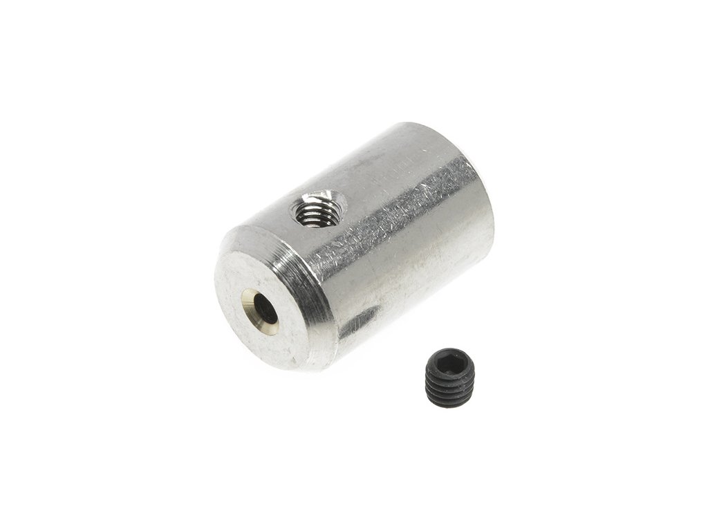 Spojka hřídelí HD, průměr otvoru na hřídel motoru je 2mm, jištěna červíkem M3. Z opačné strany je šestihran 5,5mm, celková délka je 16mm.