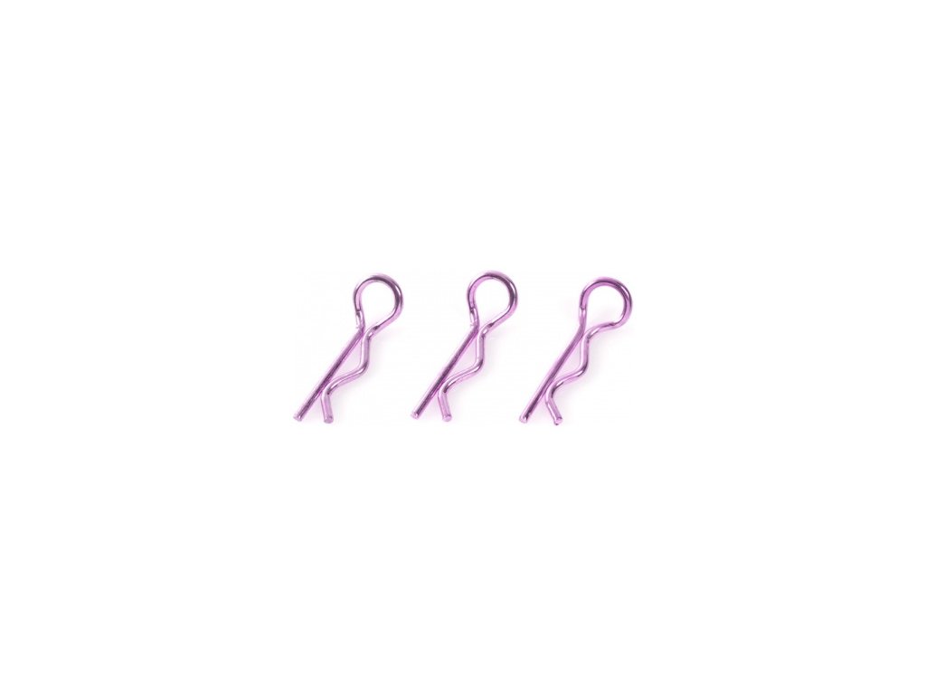Náhradní díl pro RC modely aut v měřítku 1:8: Sponka karosérie malá zahnutá fialová (10 ks).