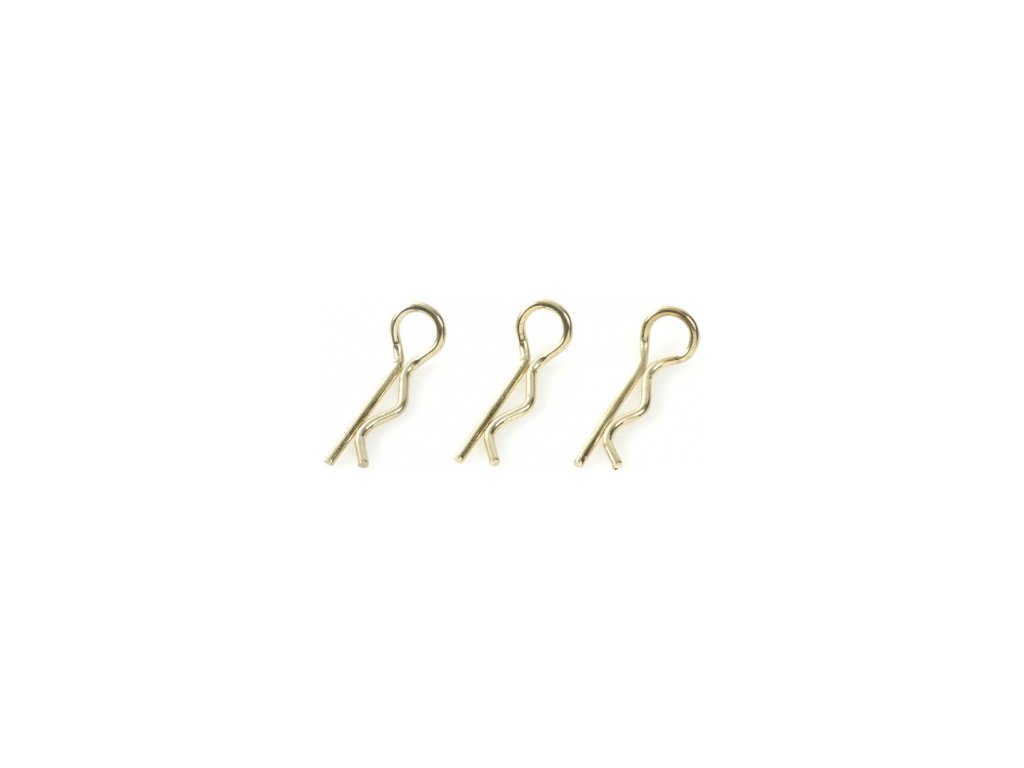 Náhradní díl pro RC modely aut v měřítku 1:8: Sponka karosérie malá zahnutá zlatá (10 ks).