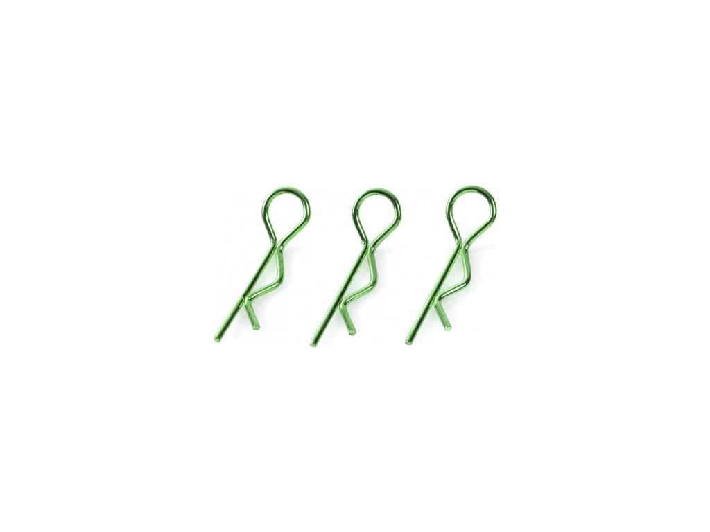 Náhradní díl pro RC modely aut v měřítku 1:8: Sponka karosérie velká zahnutá zelená (10 ks).