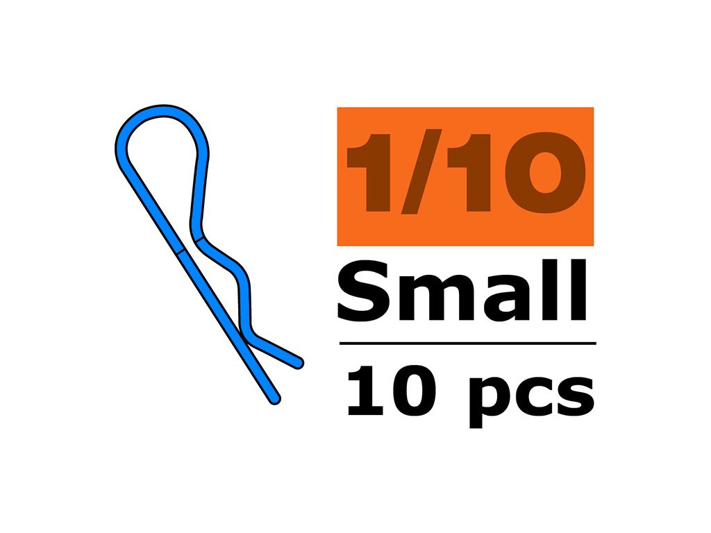 Náhradní díl pro RC modely aut v měřítku 1:10: Sponka karosérie malá 45°modrá (10 ks).