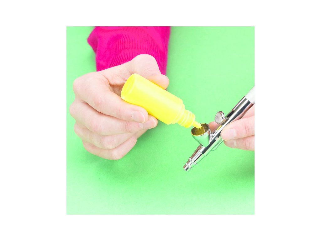 Jedná se o jednoduchou celokovovou stříkací pistoli. Tryskou kontinuálně proudí tlakový vzduch z kompresoru, pákovým mechanismem plynule ovládáte jehlu dávkující množství barvy, které bude proudícím vzduchem rozprášeno. Pistole má tzv. horní plnění, takže barva gravitační silou stéká k regulační jehle. Tento způsob nabízí valmi přesné dávkování barvy a tím i předvídatelné chování pistole.