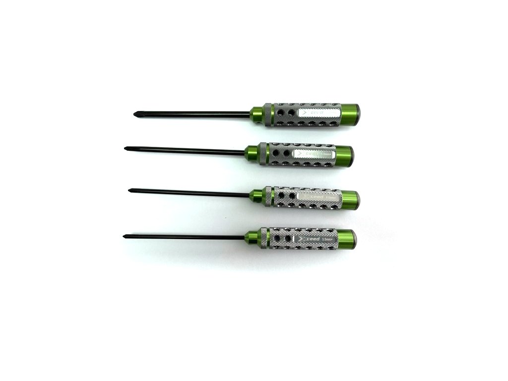Toto je sada Xceed křížových šroubováků (4 ks.) s novým vzhledem a novým designem. Díky poutavým 2 barevným tónům (zelená a kovově šedá/černá) z eloxovaného dutého hliníkového designu rukojeti a hrotům HSS, které poskytují krásný vzhled, pohodlný a lehčí pocit. Také díky nim jsou odolnější a zároveň zajišťují dobrou přilnavost k hlavě šroubu.