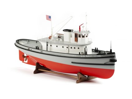 Detailně propracovaná neplovoucí maketa amerického přístavního remorkéru US Navy z roku 1941 s dřevěným plaňkovaným trupem o délce 620 mm dánské firmy Billing Boats. Stavebnice...
