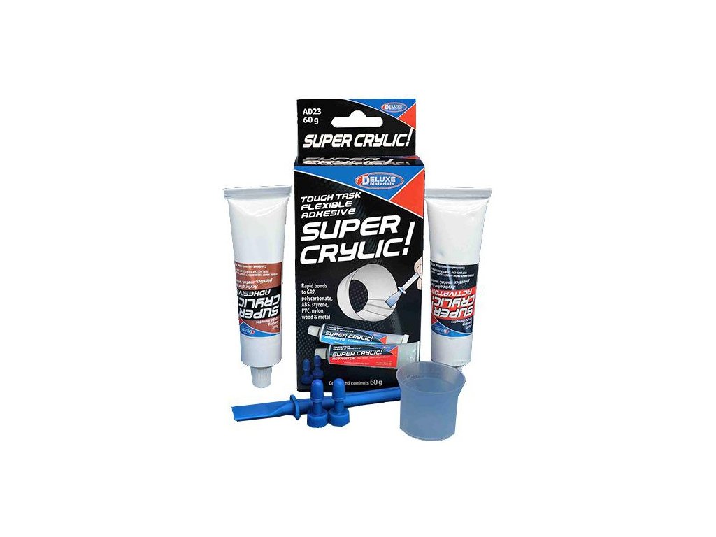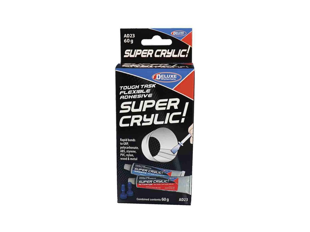Super Crylic je dvousložkové lepidlo podobné epoxidovým pryskyřicím. Na rozdíl od epoxidů Super Crylic lepí velmi dobře i plasty a polyesterové lamináty. Ideální pro lepení a opravy plastových krytů, plastových trupů lodí. Lepidlo lze kombinovat i se skelnou tkaninou.