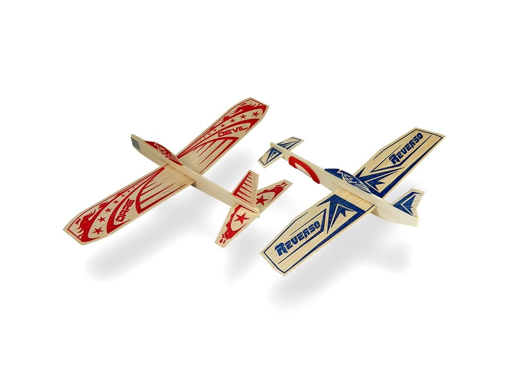 Stavebnice dvojice házedel o rozpětí 305 mm pro superhrdiny všeho věku z předseknutých balsových dílů. Obsahuje klasický Daredevil a "obrácené" Reverso s "kachní" výškovkou na přídi.