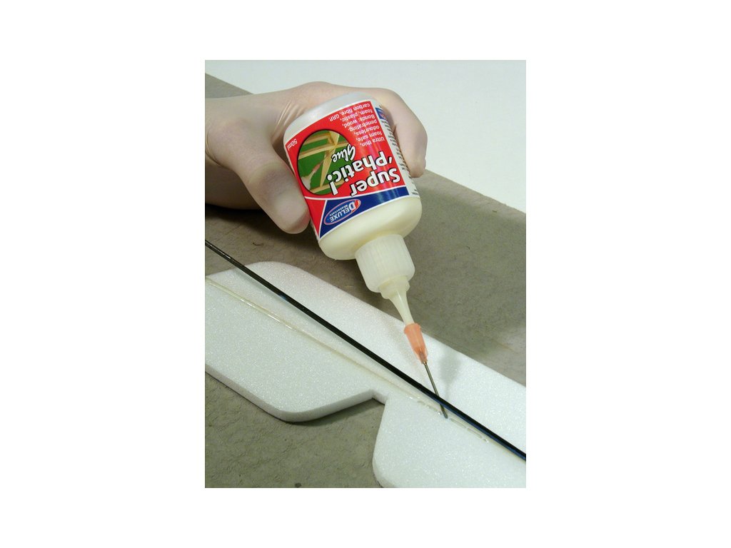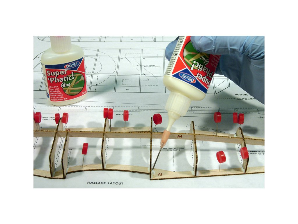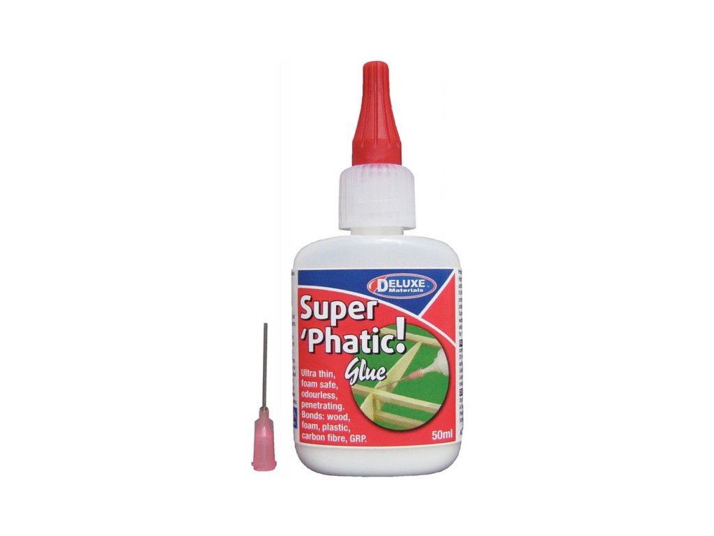 Super Phatic je univerzální řídké lepidlo, které může být alternativou k řídkým kyanoakrylátovým lepidlům. Je netoxické, lepí bez zápachu, nezaschlé lepidlo lze smýt vodou. Velmi dobře se vsakuje do materiálu. Lepí balsu, dřevo, plastové panty, pěnové materiály a kompozity.