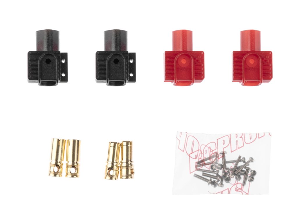 Zlacené 7mm konektory s domkem pro montáž do rámu vrtulníků SAB Goblin 700 Pro/RAW/KSE. Zastrčením pohonné baterie do slotu dojde k zapojení konektorů. Varianta s rovným přívodem kabelu do konektoru. Pro 8,4mm2 (8AWG) kabel, konstantní proud 280A, špičkový 350A. Max 60V DC. Nepájecí varianta - kabel je zajištěn pomocí imbusového červíku. Balení 2 páry (2x černý a 2x červený konektor) pouze pro Akku. Objednací kód výrobce RSS7808 D7 SAB BAT2.Doplňkové parametry