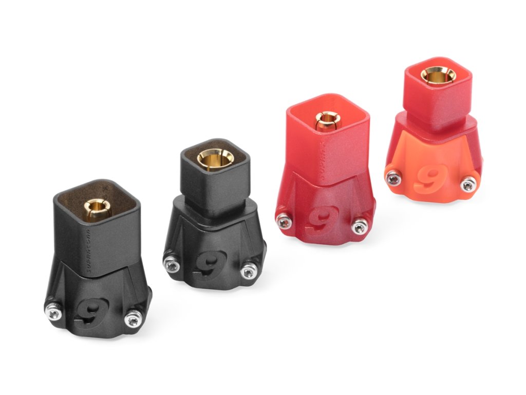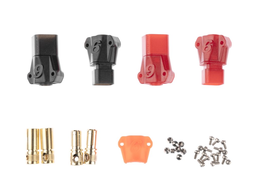 Zlacené 6mm konektory s domkem pro 8,4mm2 (8AWG) kabel. Konstantní proud 240A, špičkový 280A. Max 60V DC. Nepájecí varianta - kabel je zajištěn pomocí dvou imbusových červíků. Balení 2 páry. Kompatibilní s Anti-spark S6 6808 ASST (REB6808ASSTS6P2).Doplňkové parametry